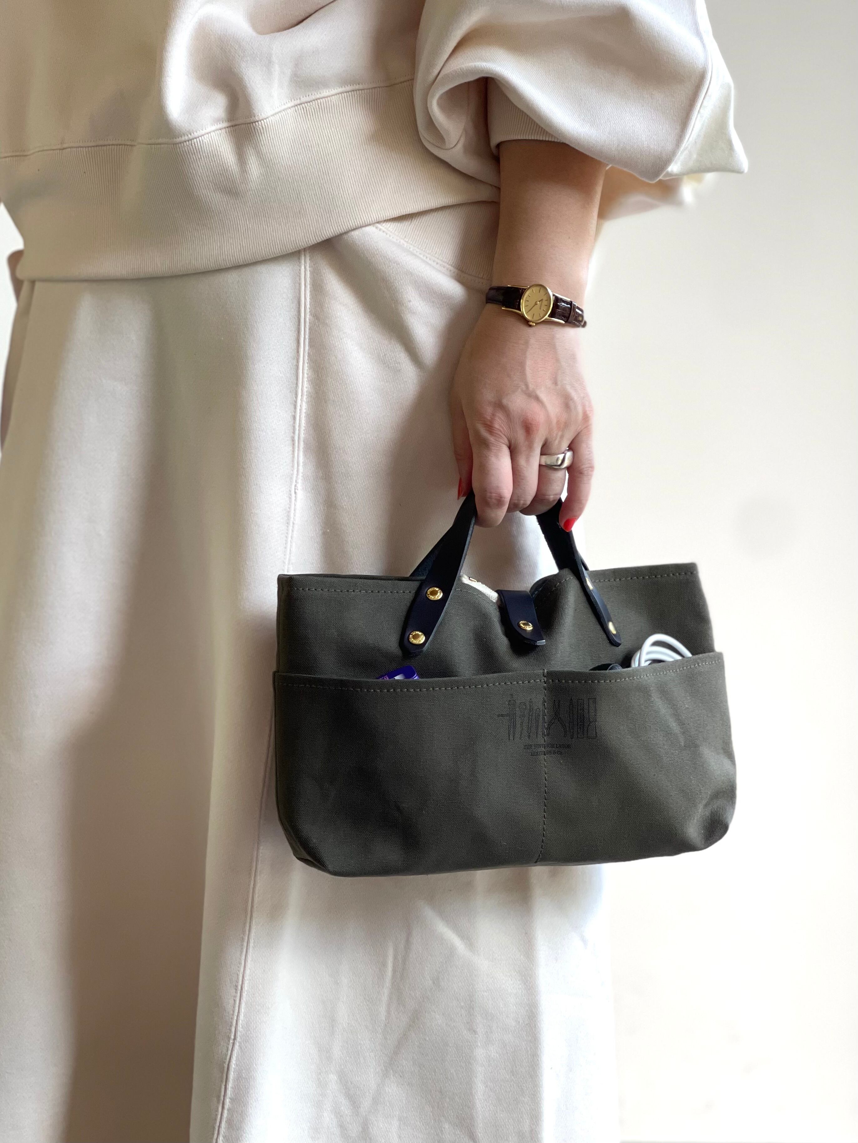 国産のパラフィンキャンバスを使用したミニバッグ。