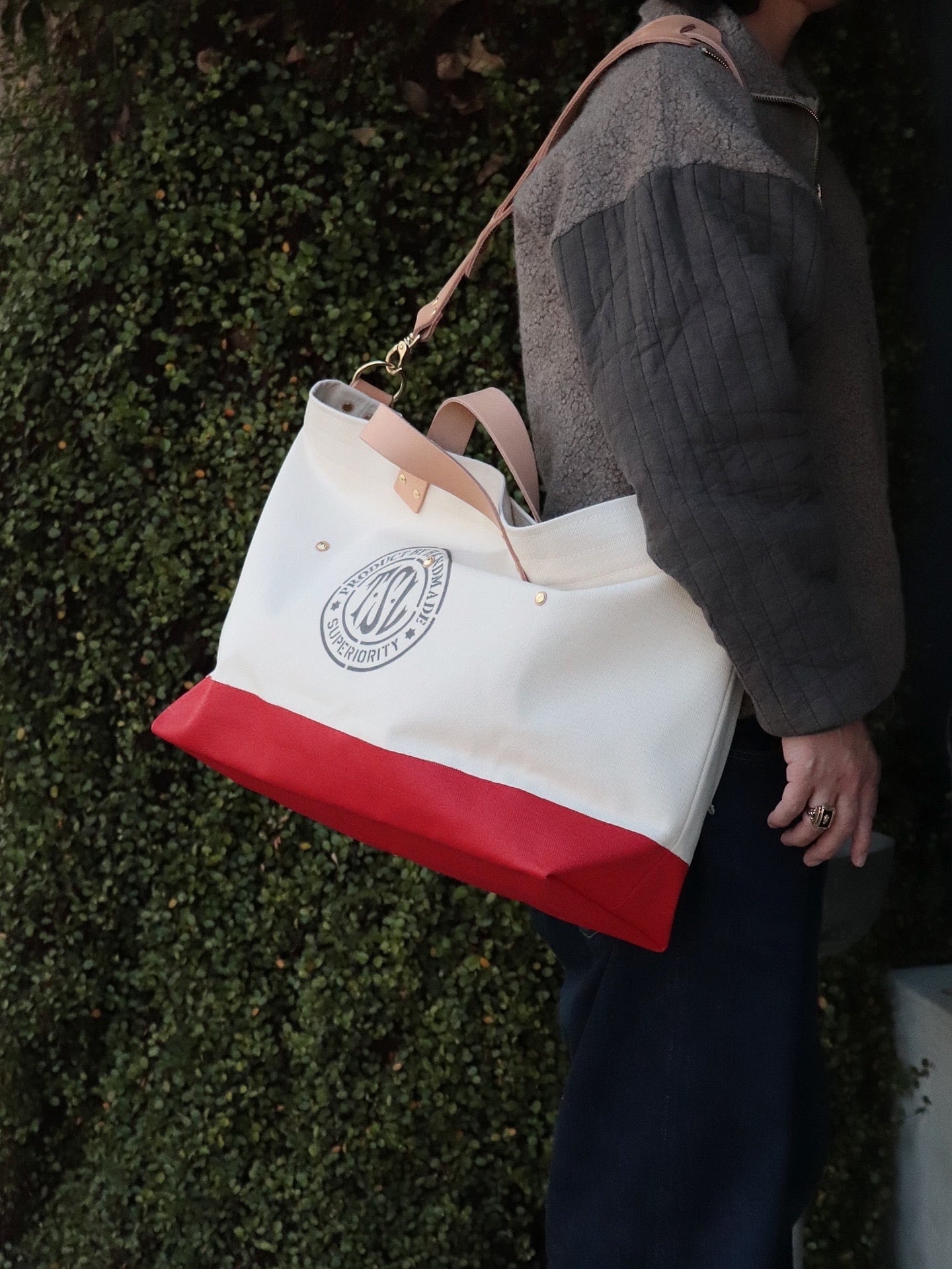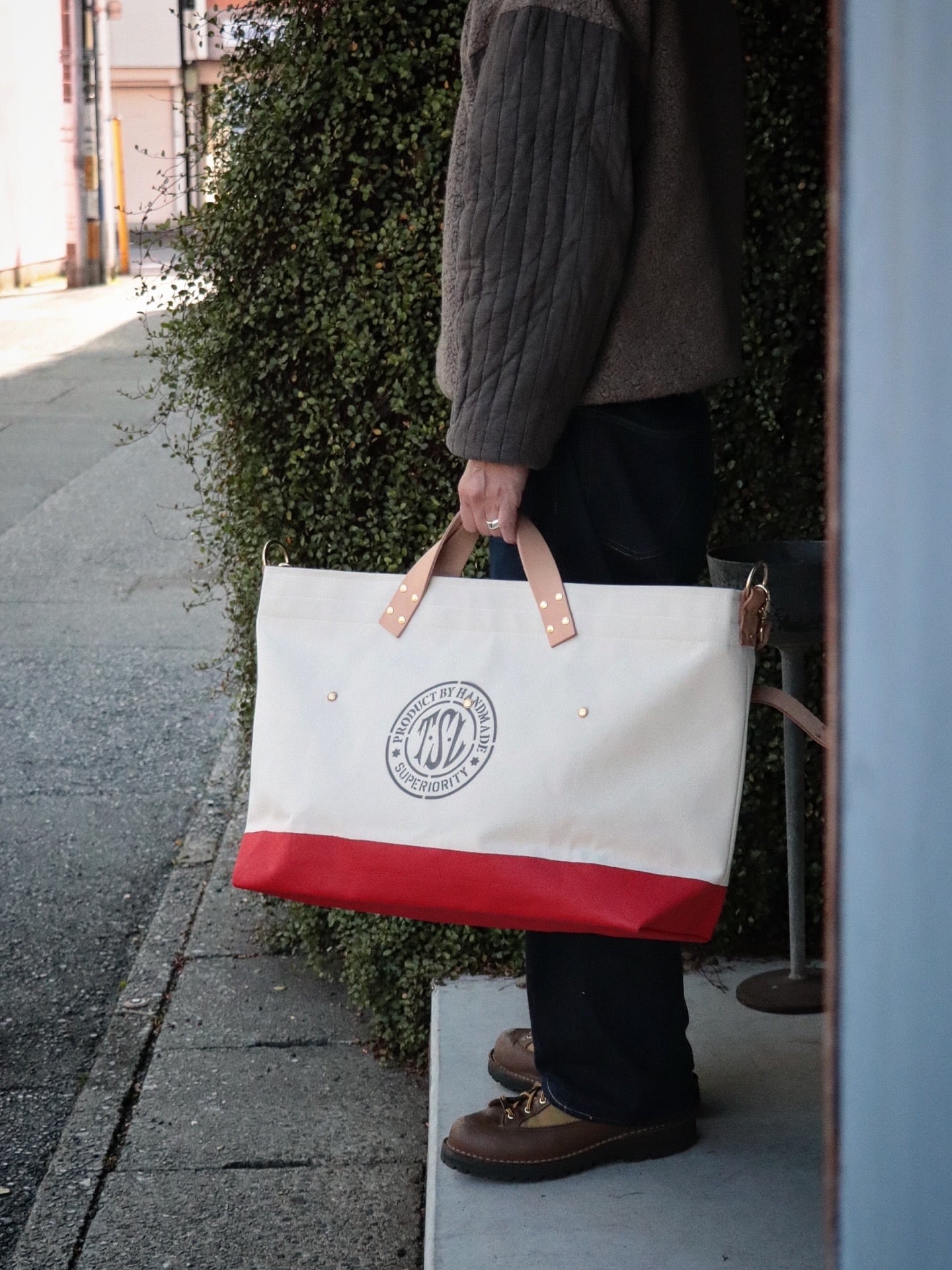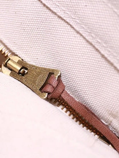 シャトル織機で一日2反しか織ることのできない倉敷産帆布や、東京下町の鋳物工場で作られた真鍮金具、そして、ミモザの樹皮から抽出されたタンニンでなめされた国産のヌメ革。