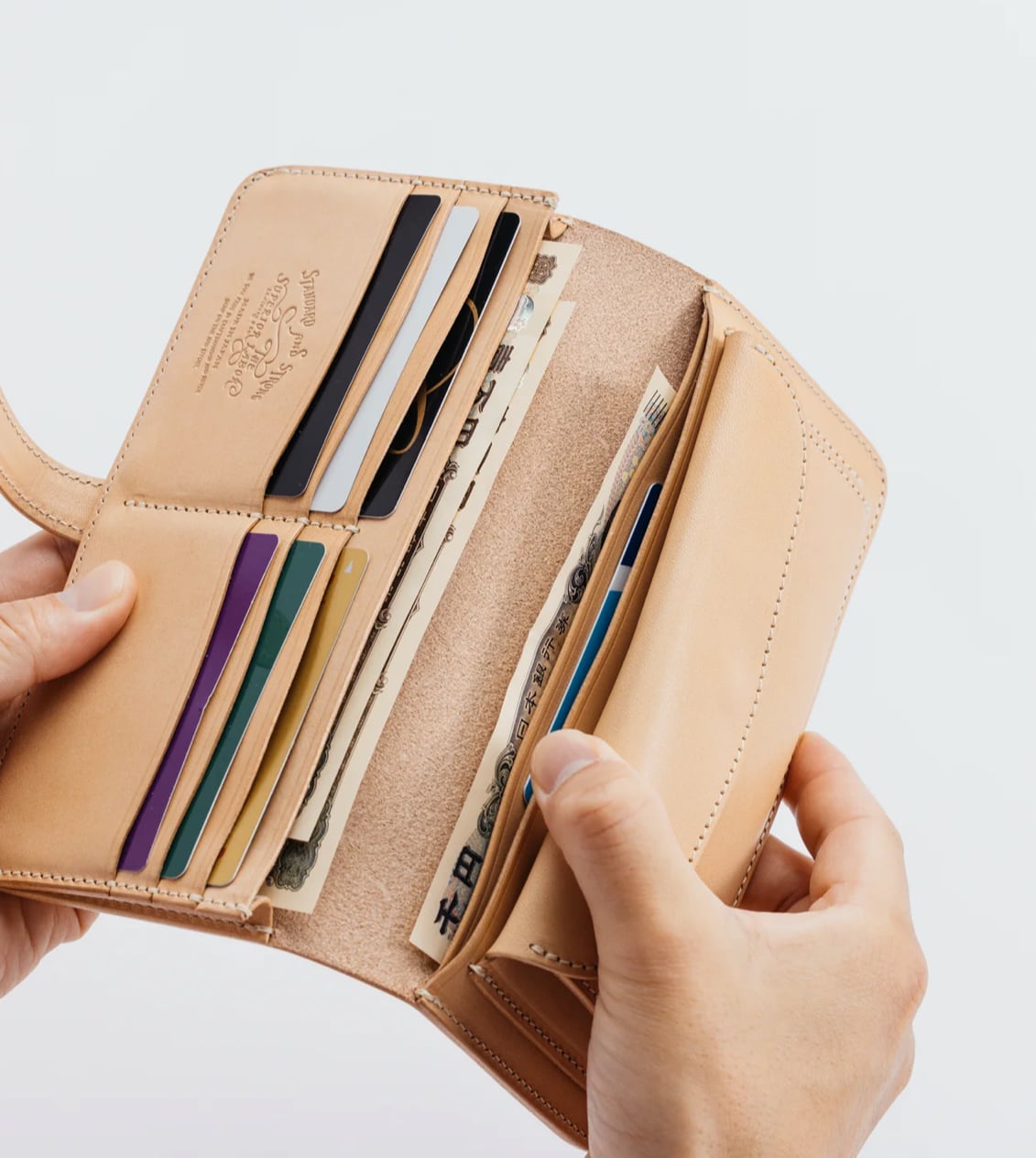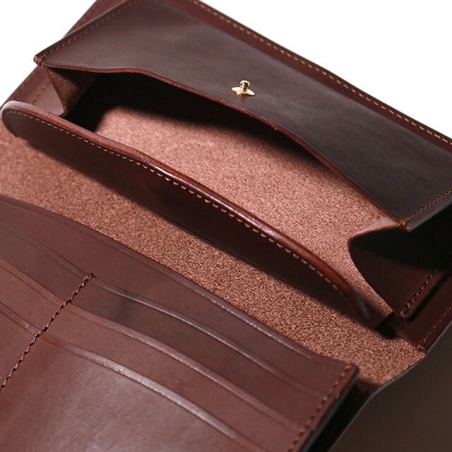 ベリーと呼ばれる繊維の粗い部位を落とした上質部位のみを鞣し、たっぷりとオイルを入れたオリジナルレザーを使用したウォレット。