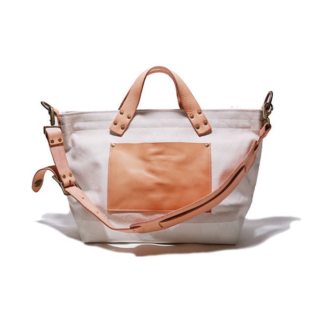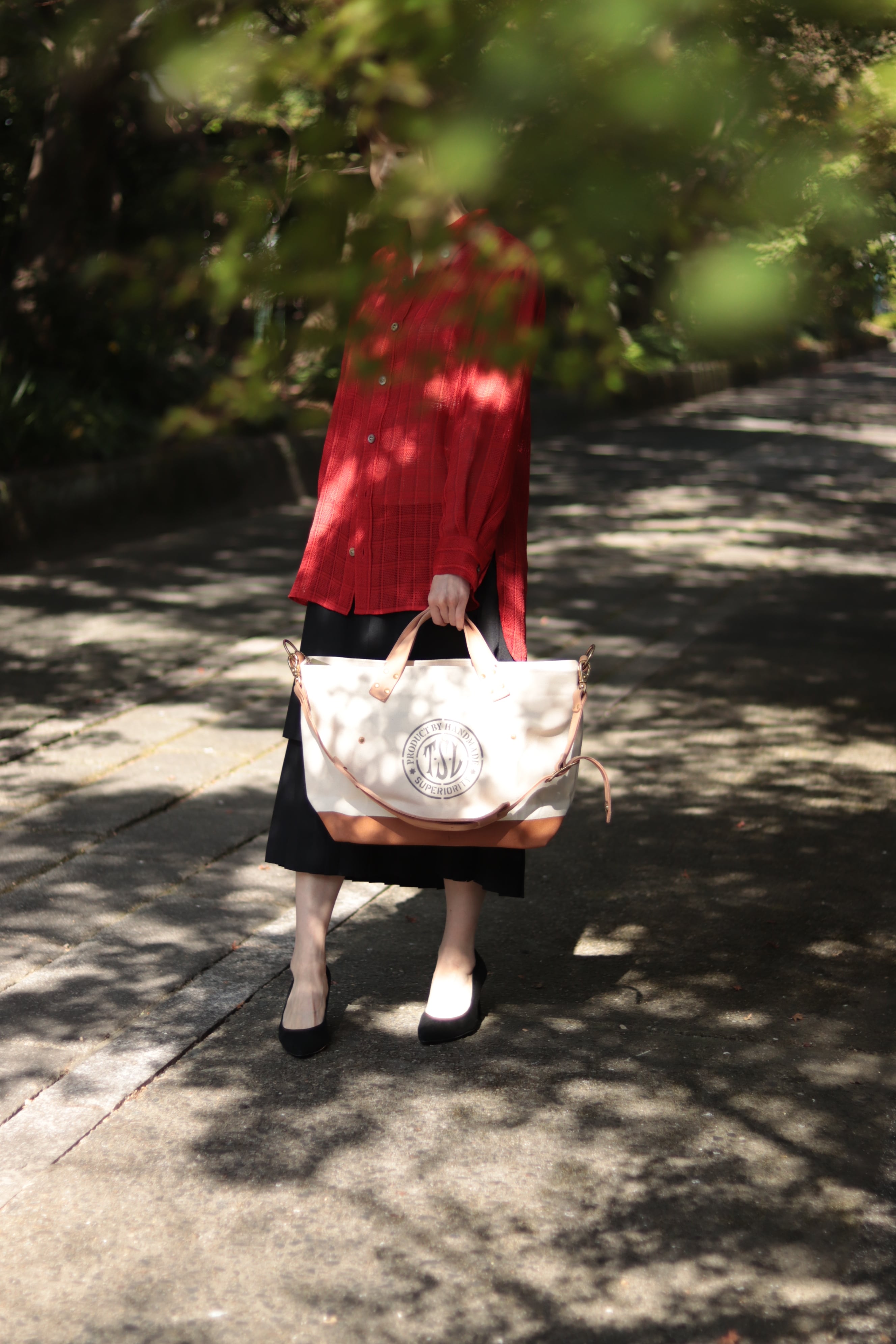シャトル織機で一日2反しか織ることのできない倉敷産帆布や、東京下町の鋳物工場で作られた真鍮金具、そして、ミモザの樹皮から抽出されたタンニンでなめされた国産のヌメ革。