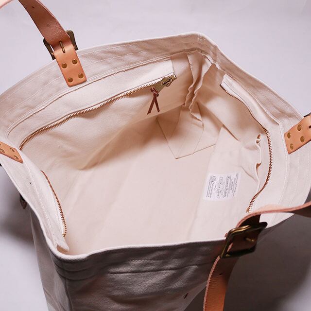 シャトル織機で一日2反しか織ることのできない倉敷産帆布や、東京下町の鋳物工場で作られた真鍮金具、そして、ミモザの樹皮から抽出されたタンニンでなめされた国産のヌメ革。