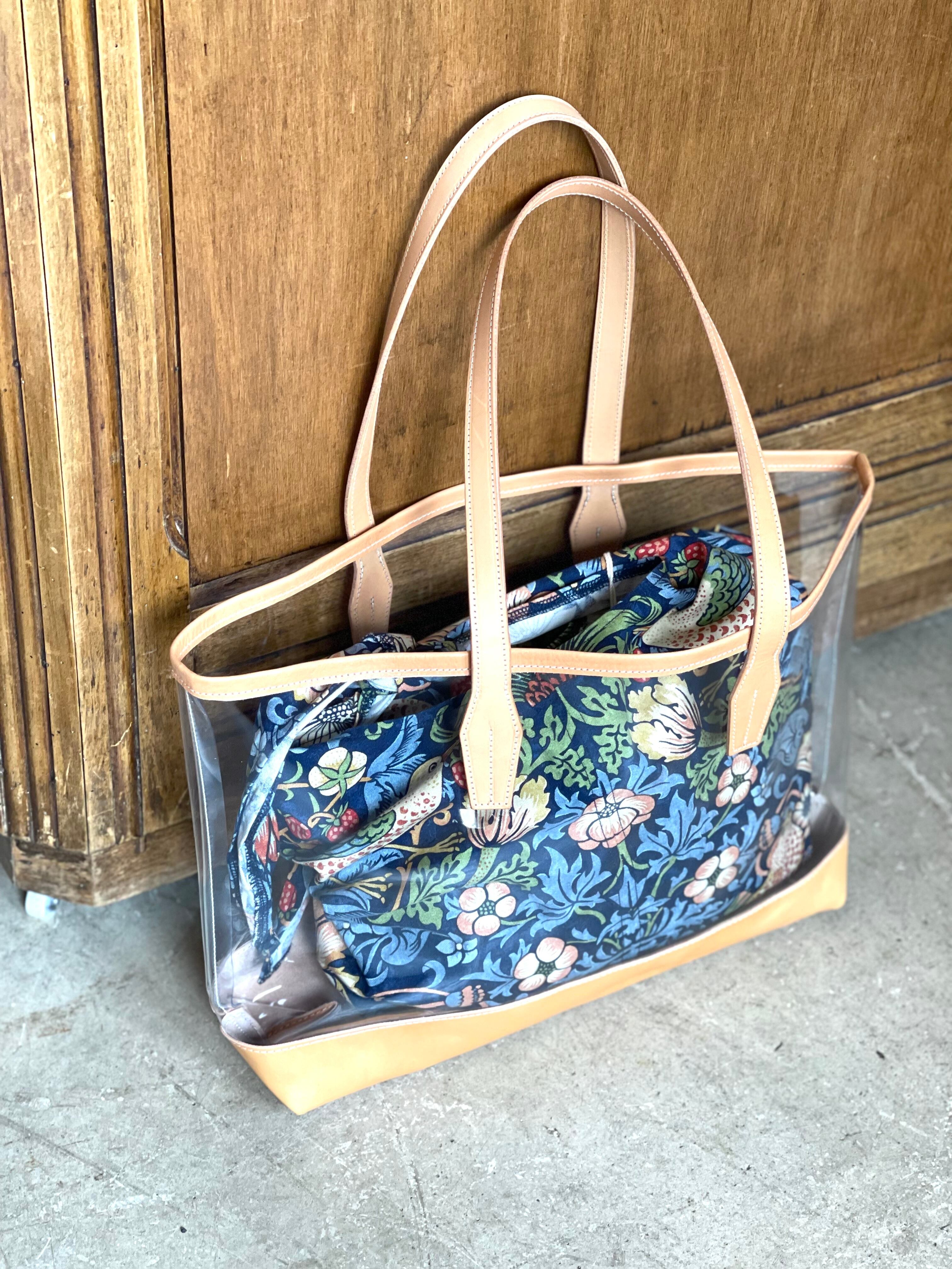 ストライプのインナーバッグが付いたシースルートート。